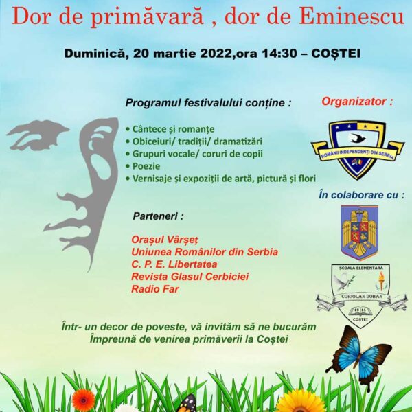 Eveniment fără egal – Festivalul Primăverii „Dor de primăvară, dor de Eminescu” 25 martie 2022 Activități RIS