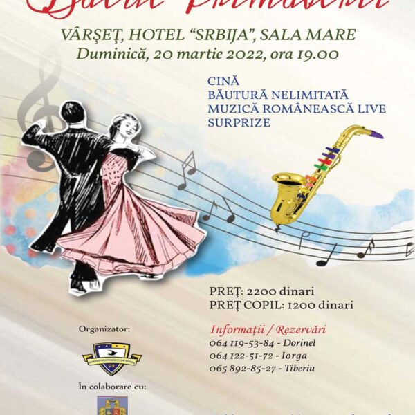 Anunţ „Balul Primăverii 2022“ By ris28 februarie 2022 Activități RIS Activități RIS Anunţ „Balul Primăverii 2022“ Prima ediție a Balului Primăverii readuce primăvara în inimile românilor din Serbia la Vârşeț. Peste ...