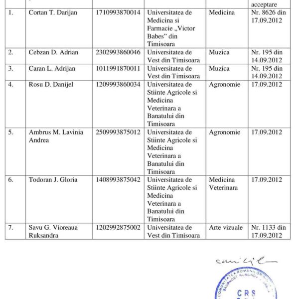 Demersul CRS privind soluționarea înscrierii candidaților români din Serbia la universitățile din România ris18 septembrie 2012 Noutăți
