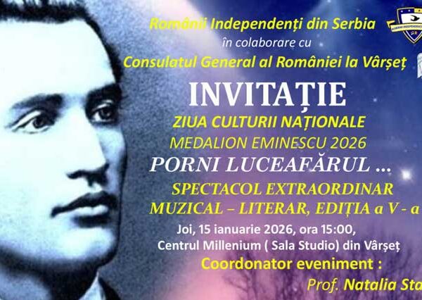 Ziua Culturii Naționale la românii din Serbia – Medalion Eminescu 2026 Gabriel Gaspar13 februarie 2026 Activități RIS