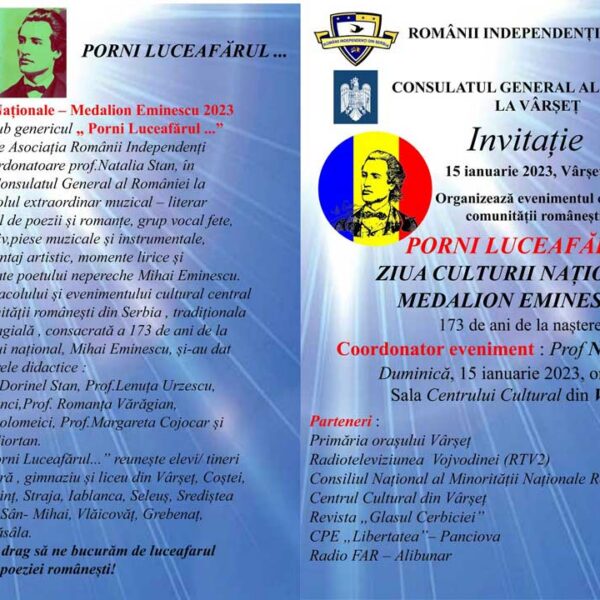 15 ianuarie – „Porni Luceafărul”, eveniment cultural pentru românii din Serbia Gabriel Gaspar13 februarie 2026 Activități RIS