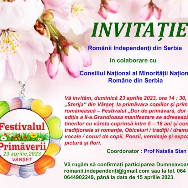 Trei evenimente româneşti în luna aprilie la românii din Serbia Gabriel Gaspar13 februarie 2026 Activități RIS