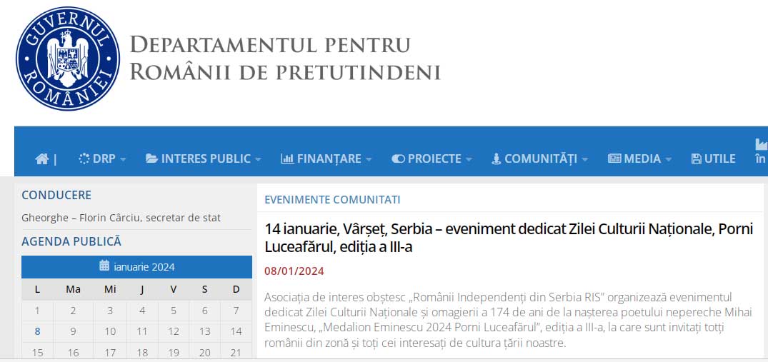 Ziua Culturii Naționale la românii din Serbia – Medalion Eminescu 2026