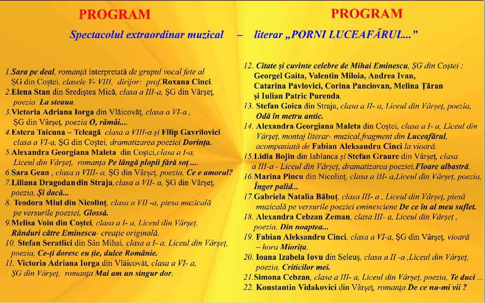 Mesici 2026: Copiii sunt așteptați la Festivalul „Dor de primăvară, dor de Eminescu”