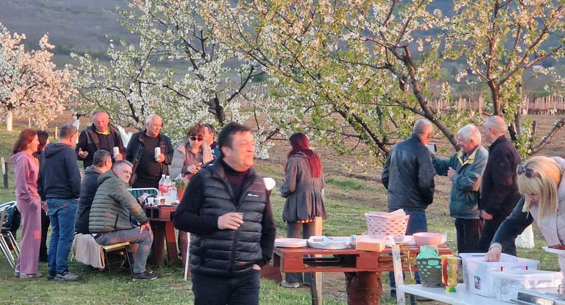 Sărbătoarea a debutat în orele amiezii, într-o atmosferă de tihnă și bucurie, acompaniată de acorduri de chitară și acordeon. Sub bolta albă a florilor, cântecul s-a împletit cu zumzetul albinelor și ciripitul păsărilor, creând o simfonie naturală de o rară autenticitate.
