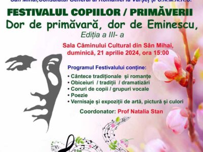 Activități RIS Programul Festivalului Primăverii „Dor de primăvară, dor de Eminescu” I – Festivalul Primăverii „Dor de primăvara, dor de Eminescu”, Sân-Mihai 2024, este inaugurat de ...