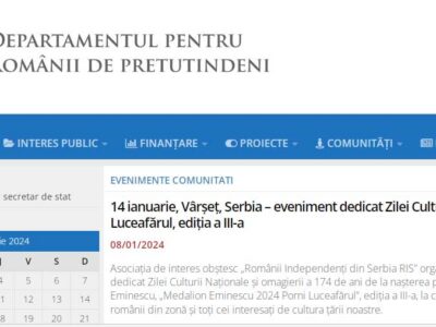Activități RIS Medalion Eminescu și Ziua Culturii Naționale la românii din Serbia Asociația de interes obștesc Românii Independenți din Serbia (RIS) celebrează în mod consecvent marile sărbători ...