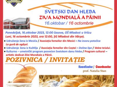 Activități RIS Ziua Mondială a Pâinii sărbătorită festiv la Școala „Mladost” din Vârșeț Ziua Mondială a Pâinii a fost marcată cu entuziasm la Școala „Mladost” din Vârșeț, unde ...